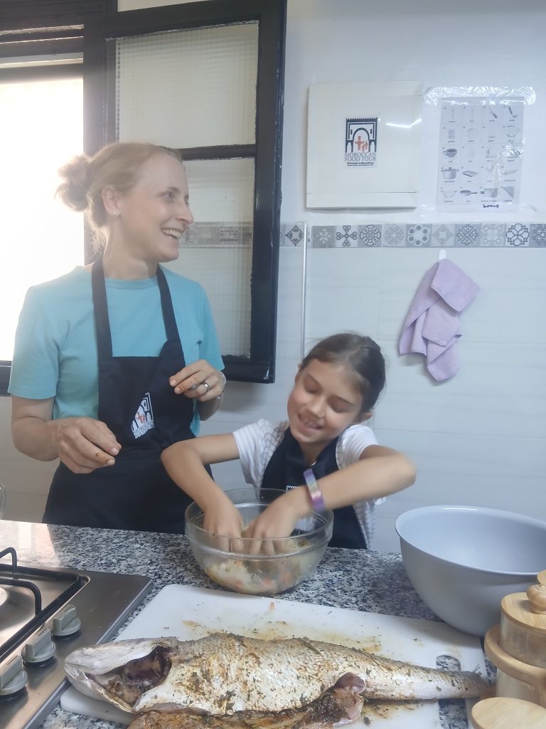 Kids love kneading Moroccan khobz (bread), rolling msemen, and tasting their own tagine.