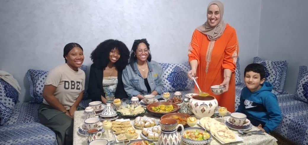 Are you ready to embark on a culinary adventure that transcends the ordinary? Join us for a unique dining experience that sets itself apart from the typical Moroccan restaurants in town. This is not just a meal; it's an immersive culinary adventure where you're invited to spend quality time experiencing the hospitality of the locals, creating enriching memories that last a lifetime. Sharing is caring, and eating the Moroccan way from the same dish embodies this philosophy perfectly. Moroccan food is homely and deeply social, inviting everyone to gather around and share a meal together. Our guests will experience this firsthand, enjoying the warmth of traditional Moroccan dining. A unique dinner experience : Indulge in a four-course menu crafted by Najat herself, in the warm and inviting setting of her home. This is your chance to step off the beaten path and savor true home-cooked Moroccan dishes that you won't find in any restaurant. The evening's chef's recommendation menu is a testament to the region's culinary heritage: Starters: Begin with a delightful array of Moroccan salads and Starters. Main Course: Enjoy a magnificent oven-baked fish pastilla, a dish bursting with authentic Moroccan flavors. Dessert: Satisfy your sweet tooth with Jawhara, complemented by refreshing mint tea. And you will have other menus that you can choose from if this one doesn't look appealing. Personalized and Inclusive Our dining experience is designed with flexibility in mind. Whether you have dietary restrictions or specific preferences—be it vegan, vegetarian, Keto ... —we can customize your menu to ensure an unforgettable meal tailored just for you. Simply let us know your special requests in the comments, and we'll make it happen.
