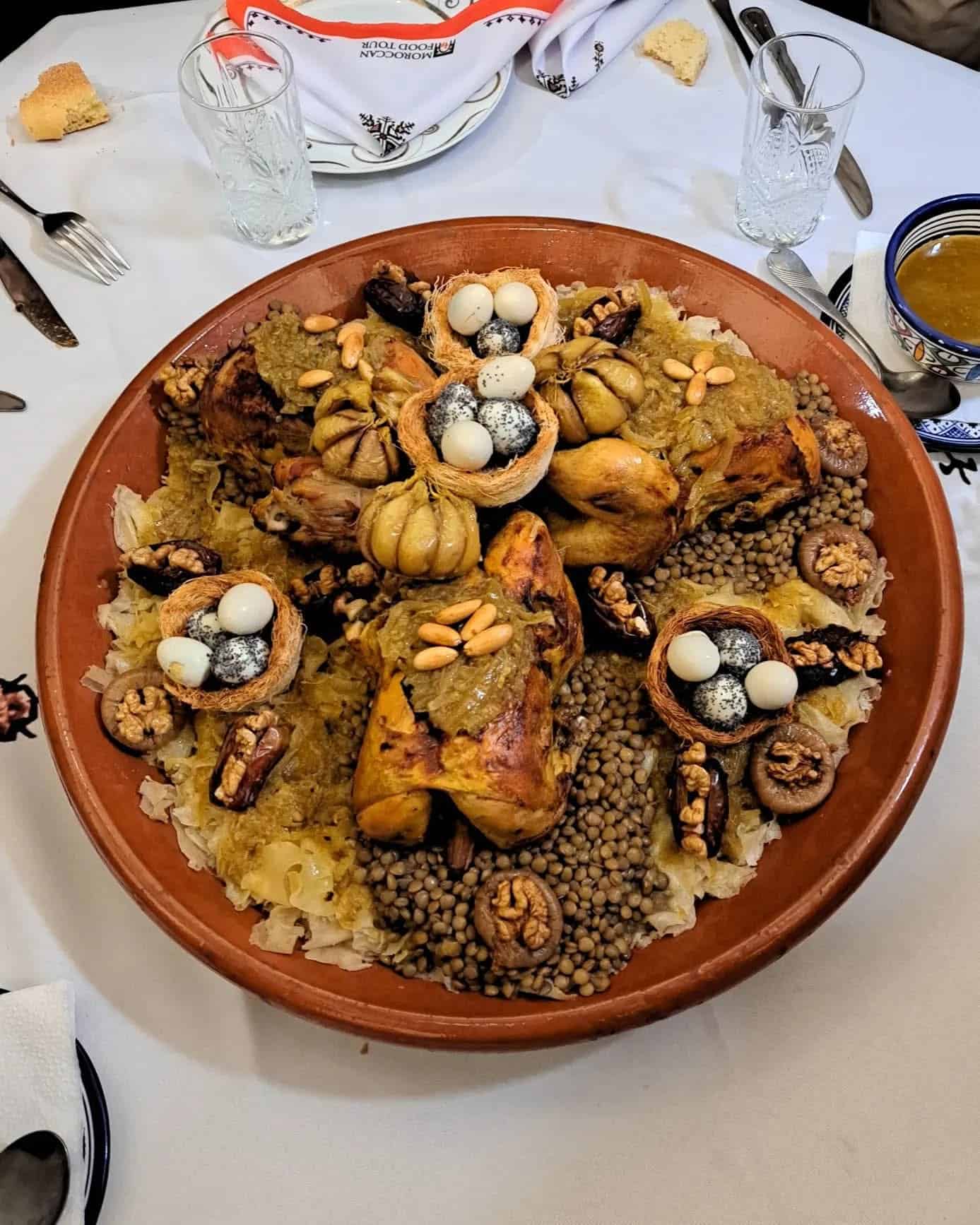 Behind the doors of a Fes riad, share traditional Moroccan dishes served in the center of the table for a true local experience